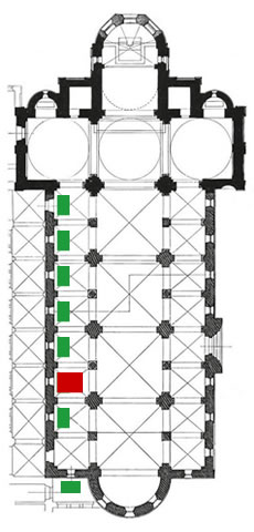 Zoomfunktion: Maus über den gewünschten Bildbereich führen. Die grünen Bereiche im Grundriss der Basilika sind anklickbar.